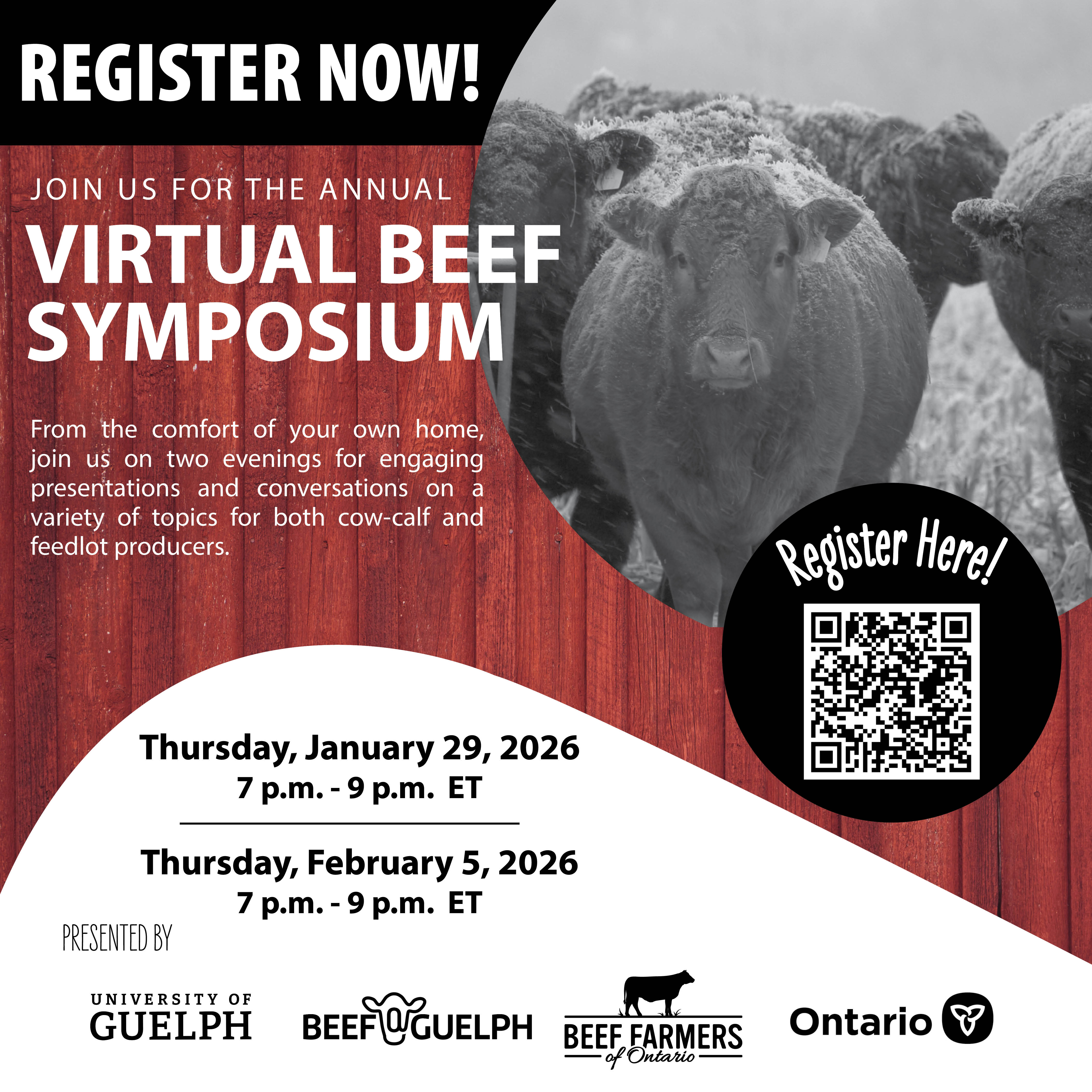 Beef@Guelph, Ontario Ministry of Agriculture, Food and Agribusiness (OMAFA) and Beef Farmers of Ontario (BFO) welcome you to join us virtually on January 29th & February 5th from 7 – 9 p.m.